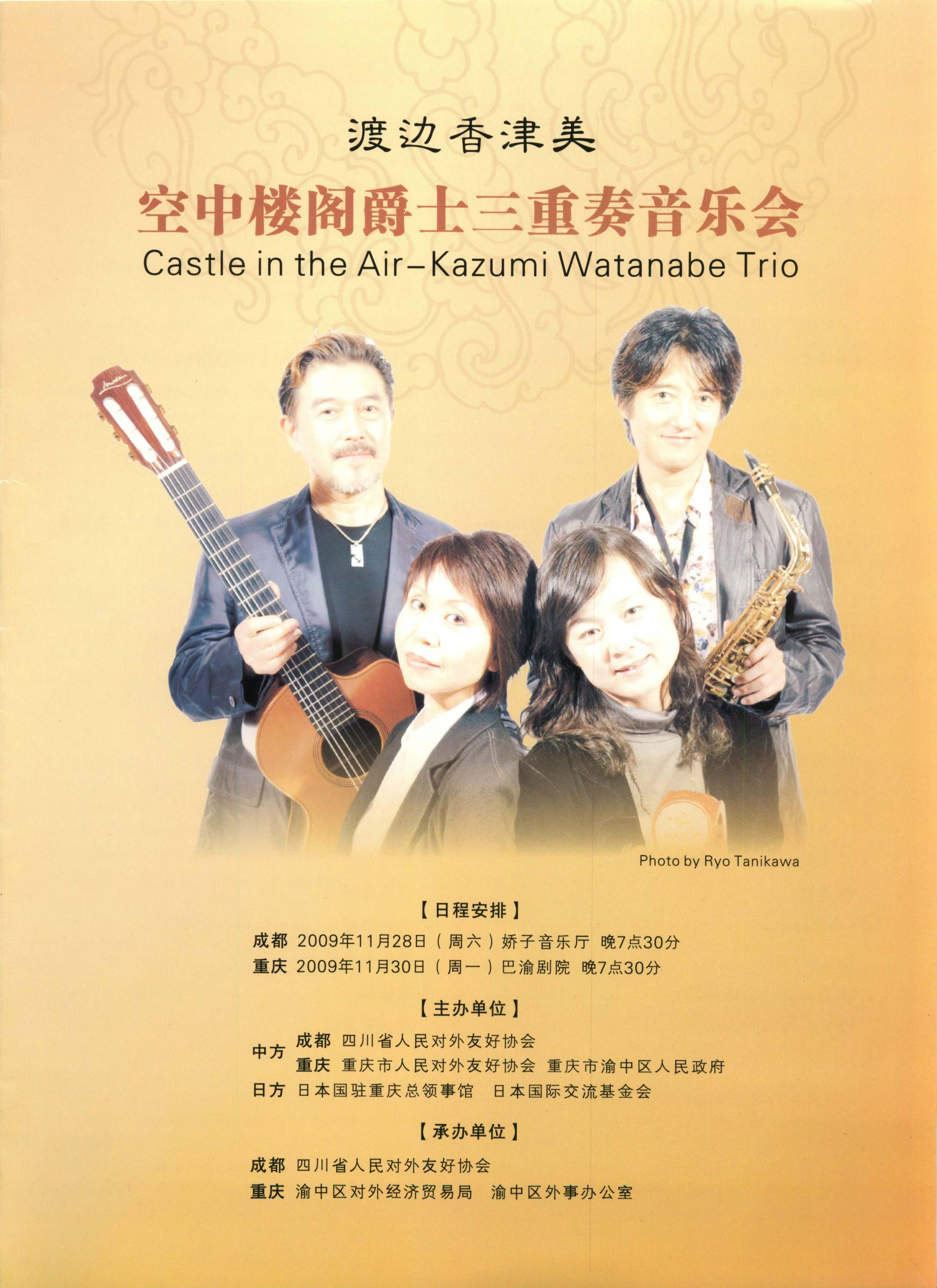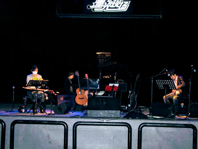 僕とパートナーのピアニストである谷川公子とのユニット「Castle In The Air」にサックスとフルートの本田雅人、中国琵琶の女流演奏家でモンゴル自治区出身のジャンティンを迎えた四重奏団。バンド名も中国風に「空中楼閣」とシャレてみた。