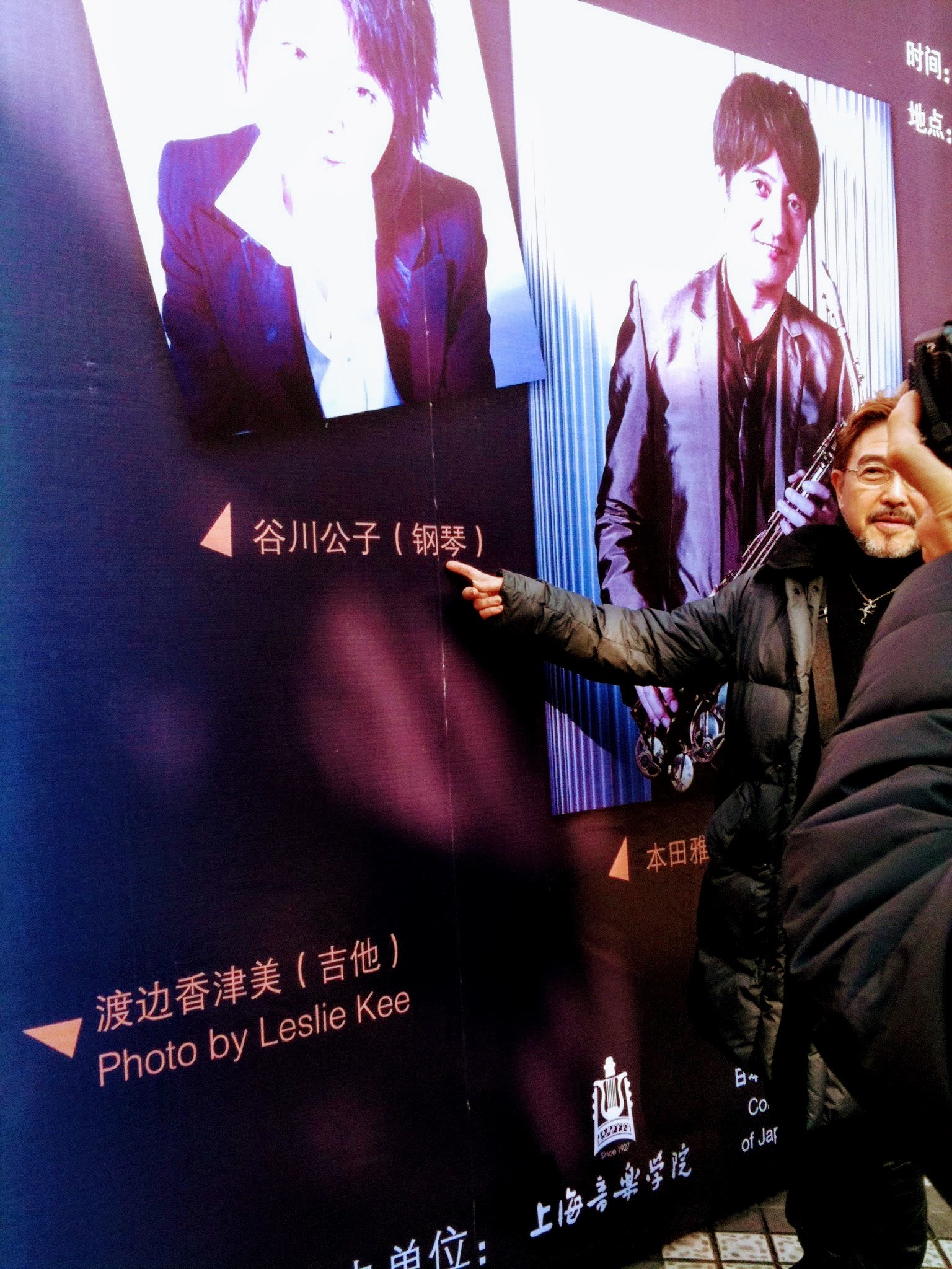 4都市7公演のスタートは万博を控えて活気に沸く上海。急速な近代化を目の当たりにしながら、底知れぬパワーを秘めた街の匂いを嗅ぐ。会場下見とリハーサルを兼ねて上海音楽院を訪れると、学内に掲げられた我々の巨大ポスターに遭遇。その大きさたるや映画館のそれ。思わずメンバーかわるがわるに自分のどでかい顔と記念撮影。